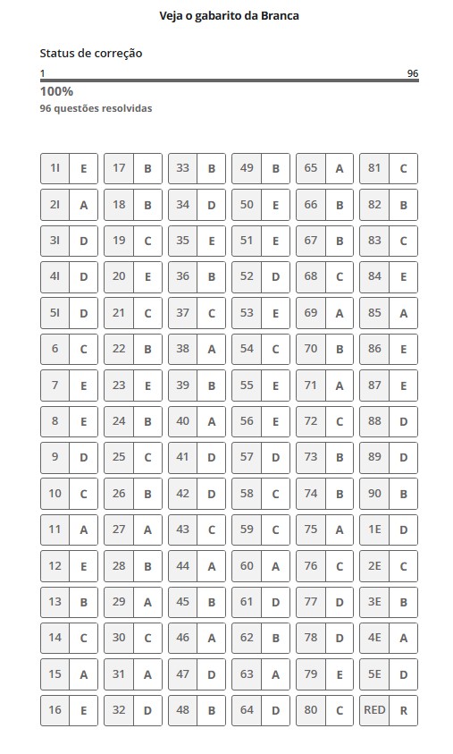 Gabarito prova branca Enem 2025 extraoficial e correção das provas