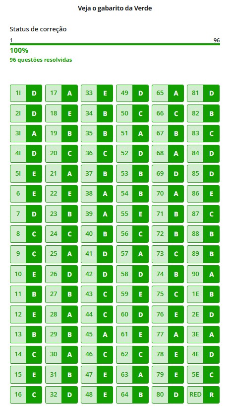 Gabarito da prova verde do 1º dia do Enem 2025